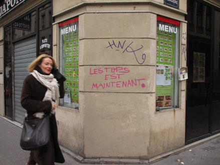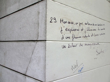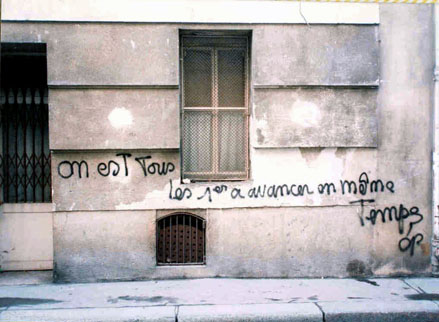 Outre cette compilation systématique & hasardeuse de quarante ans d’écritures murales, on trouvera sur le site deux diaporamas sur le même sujet, l’un consacré aux bombages des années 70 et l’autre s’enrichissant au jour le jour d’inscriptions plus récentes, glanées sur le Net ou prises sur le vif, sur cette page-là.