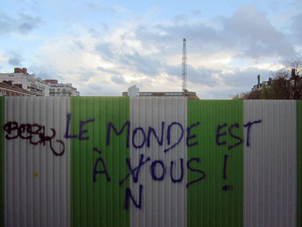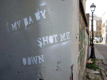 Outre cette compilation systématique & hasardeuse de quarante ans d’écritures murales, on trouvera sur le site deux diaporamas sur le même sujet, l’un consacré aux bombages des années 70 et l’autre s’enrichissant au jour le jour d’inscriptions plus récentes, glanées sur le Net ou prises sur le vif.
