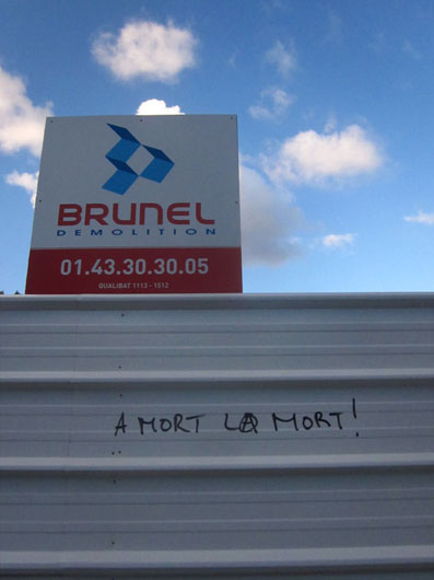 Et tant quà remonter le fil du temps, on se rappellera que l’édification d’une «Maison du Peuple », pendant l’été 1970, à Villeneuve-la-Garenne, à l’initiative d’étudiants de Beaux-Arts et de sympatisants de Vive La Révolution, s’était accompagnée d’une inscription qui met à bas toute la Broken Window theory: ICI LES CASSEURS CONSTRUISENT