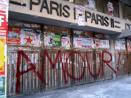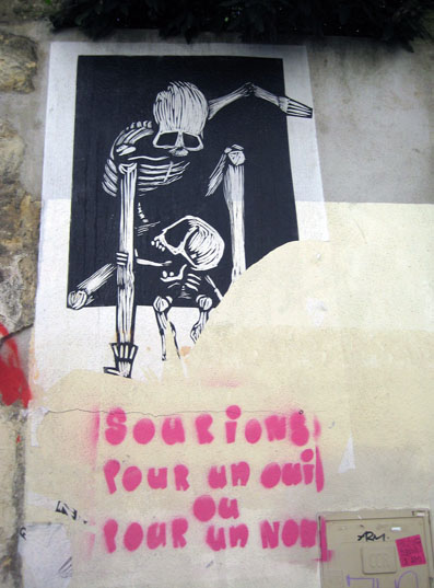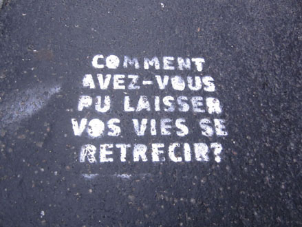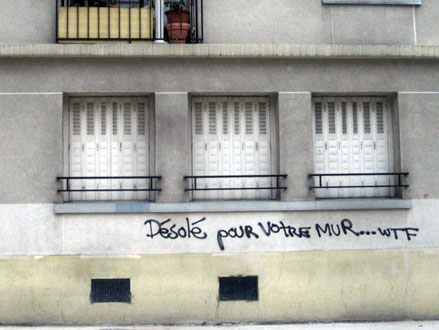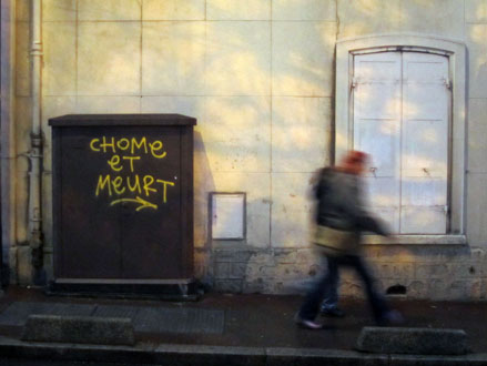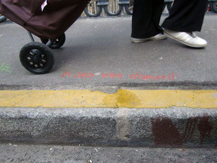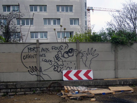 Outre la compilation systématique & hasardeuse de quarante ans d’écritures murales – Bombages à travers nos âges – dont j’ai donné quelques extraits hier, on trouvera sur le site deux diaporamas sur le même sujet, l’un consacré aux bombages des années 70 et l’autre s’enrichissant au jour le jour d’inscriptions plus récentes, glanées sur le Net ou prises sur le vif. Ci-dessus-dessous, quelques photos perso.