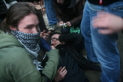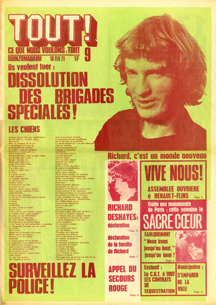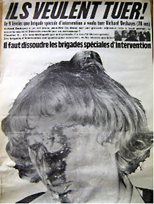 Quelques semaines pluts tôt, le 9 février, lors du manifestation non-autorisée du Secours Rouge, place Clichy, un certain Richard Deshayes, membre du groupe VLR, et co-fondateur du Front de Libération de la Jeunesse, s’était pris un tir tendu de «lance-patate» [fusil propulseur de grenades lacrymogènes] en plein visage. Lui aussi allait y perdre un œil.