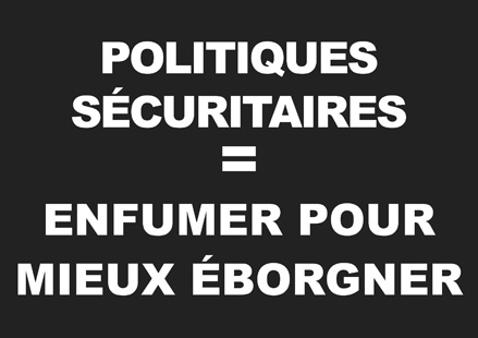 Face à ces éborgnés en série, on pourrait gloser sur le non-respect balistique des distances et des angles de tir ou sur l’usage disproportionné de la force publique. On pourrait analyser la surenchère technologique des outils répressifs (flashball, taser et même drone) dont les appellations euphémistiques (« armes non-létales ») peinent à masquer les effets secondairement mutilants ou homicides. On pourrait souligner le recours systématique aux Brigades Anti-Criminalité pour encadrer, intimider, disperser toutes les formes d’expressions, protestations et auto-organisations collectives. Mais point trop d’illusion, c’est ça le monopole étatique de la violence légitime. En démocratie, pas de carotte, sans bâton, ni matraque, ni tonfa, ni flashball, etc. Et en période de Crise à Durée Indéterminée, s’en fout des bavures et autres DCD. D’où notre légitime défiance envers les ruses et coutumes des ces « bandes armées », fussent-elles assermentées, qui quadrillent les territoires de relégations urbaines.