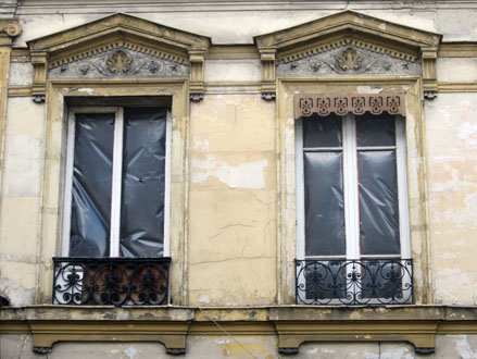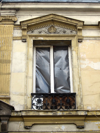 Alors, en chien de garde obéissant (lui casqué contrairement aux autres en uniforme ASVP), il a œuvré comme il sait faire. Après avoir défoncé la porte, il a fracassé les fenêtres à coups de pied-de-biche. Car c’est cela qui prime, dans le modus operandi anti-squatteur, briser les carreaux, puis défoncer les plancher, désosser les tuyauteries, pour rendre le lieu durablement inhabitable. Selon les consignes de ce vandalisme légal, le impératif c’est le bris des vitres, pas en theory, en pratique… mercenaire. Et peu importe si les occupants avaient commencé à tout remettre en l’état, puisque ce sont eux les facteurs offciels de l’incivilité galopante. Dès le lendemain, l’immeuble rendue à sa vacuité première. Défense de la propriété privée, et illustrations ci-dessous.