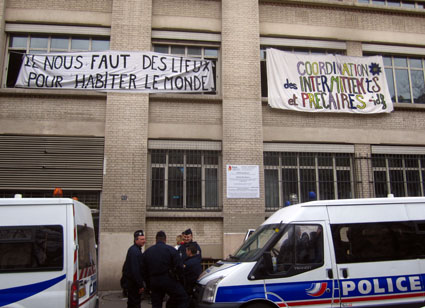 On sait aussi que la mairie a obtenu aujourd’hui de la part du préfet l’autorisation de nous faire expulser par la police du 14-16 quai de Charente où nous sommes actuellement. Que des intermittents, des précaires, des chômeurs, des étudiants s’organisent collectivement posent les questions de revenus, de logement qu’ils rencontrent quotidiennement, pour les rendre visibles dans l’espace public semble déplaire à la majorité municipale. Que la coordination des intermittents et précaires soit expulsée à l’heure où s’ouvrent les négociations sur l’assurance-chômage où, encore une fois, les droits des chômeurs seront à nouveau attaqués, ne semble pas déranger la mairie. Elle s’offusque de nos actions à son encontre, et semble déplorer nos méthodes, mais nous ne sommes ni des courtisans ni des partenaires sociaux. Nous sommes des intermittents, des chômeurs, des précaires, des étudiants en lutte.